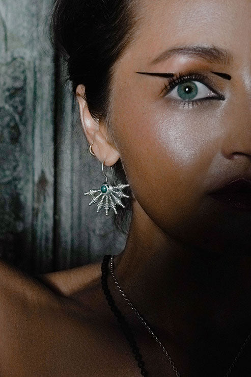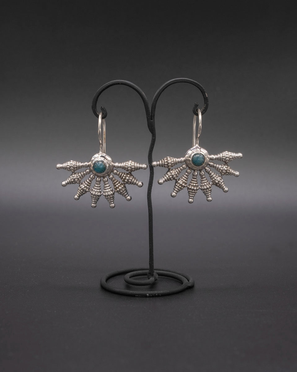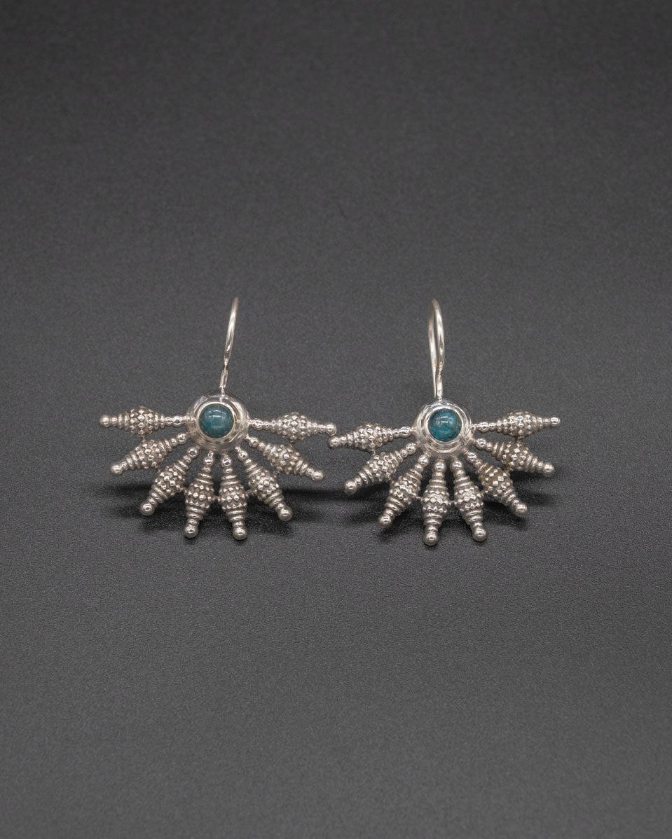 A masterpiece inspired by the traditional tribal earrings of the picturesque island of Sumba. our Apatite Sumba earrings are crafted with sterling silver and adorned with a dazzling apatite center stone.
