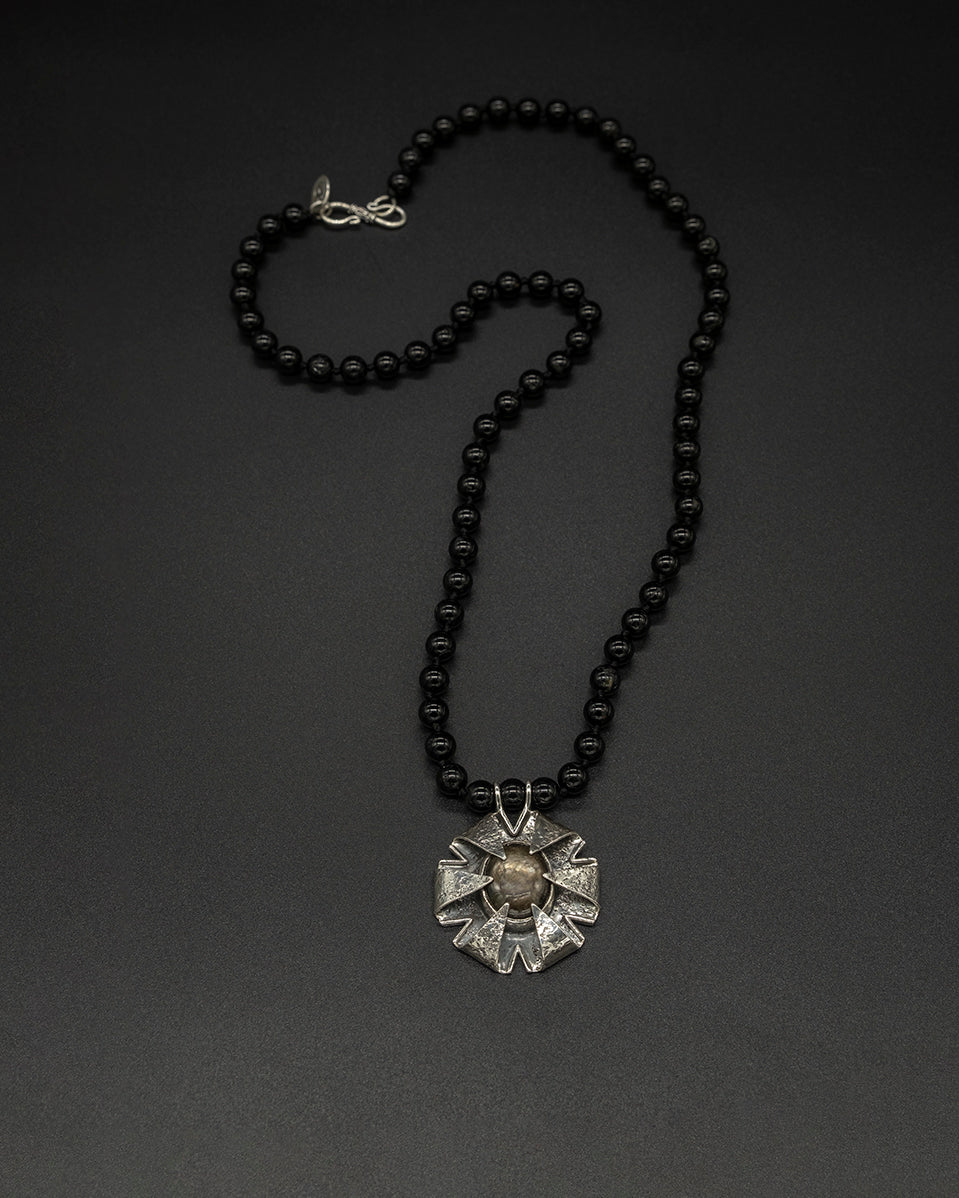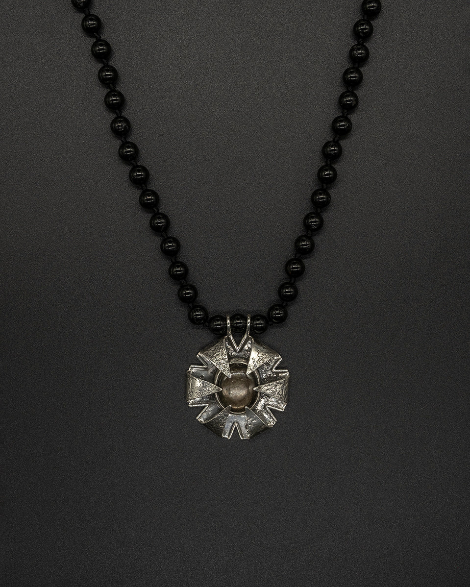 This piece features a black sapphire silver pendant on a hand-knotted black tourmaline chain. creating a striking balance of depth and elegance. Known for its protective and grounding energy. this necklace is a powerful talisman of strength. clarity. and inner peace.