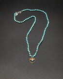 This piece features a harmonious blend of vintage brass. natural turquoise. and coral. gracefully arranged along an Arizona turquoise chain. Rich in earthy tones and artisanal character. it carries a timeless tribal elegance—perfect for everyday wear or meaningful layering.
