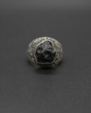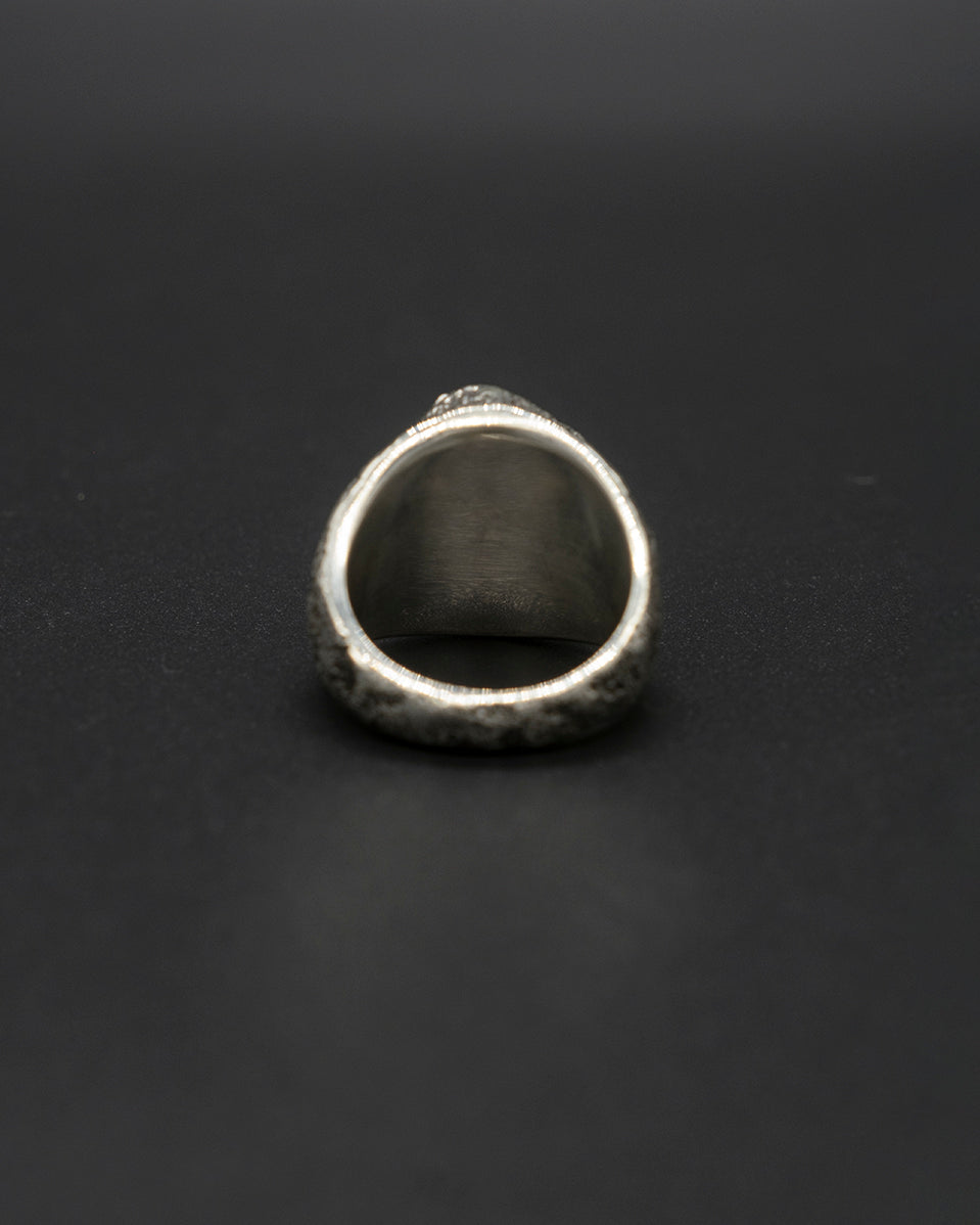 A bold signet ring centered with raw textite. left in its natural. untamed form. Set in handcrafted silver. the stone’s rugged surface brings an earthy. elemental presence—minimal. powerful. and strikingly organic.